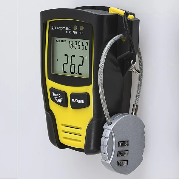 BL30 – сверхкомпактный логгер для долговременной регистрации температуры и относительной влажности воздуха в жилых, рабочих или складских помещениях. Для стационарного использования в комплект поставки входит запирающееся настенное крепление. Сочетание большой памяти для 32000 измеренных значений, свободно регулируемого интервала сохранения от 1 секунды до 24 часов на запись и функции сигнализации с записью свободно определяемых верхнего и нижнего пределов сигнализации предоставляет бесчисленное количество возможных применений, например, для оценки причин повреждений, вызванных влажностью или плесенью или для документирования последовательных климатических данных в архивах и хранилищах. Поставляемое программное обеспечение для анализа на ПК имеет функции оценки и документирования всех измеренных значений, включая время и дату, а также аварийные ситуации. Поскольку BL30 конфигурируется исключительно через ПК, манипулирование конфигурацией неуполномоченными лицами непосредственно на измерительном приборе невозможно. В зависимости от интервала записи и окружающих условий долговечный аккумулятор BL30 обеспечивает автономную готовность к работе в течение нескольких месяцев. Логгер BL30 также можно настраивать с помощью свободно доступного программного обеспечения MultiMeasure Studio (стандартная версия). Опционально доступная версия MultiMeasure Studio Professional позволяет, среди прочего, экспортировать данные в лист Excel и создавать автоматические отчеты для соответствующей оценки.