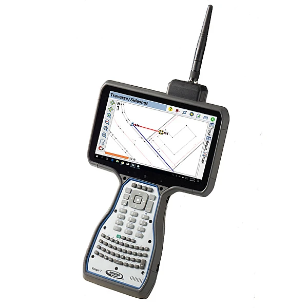 Контроллер Spectra Precision Ranger 7 - это прибор четвертого поколения на профессиональной операционной системе MS Windows 10, позволяющей устанавливать стандартные программные приложения, имеет полное право называться полевым компьютером. Он имеет большой яркий сенсорный экран с диагональю 7" и разрешением 1280×800 пикселей, полную алфавитно-цифровую клавиатуру, удобную для ввода данных, большой объем памяти: 8 Гб RAM, LPDDR4/64 Гб eMMC, с возможностью расширения до 2 Тб за счет microSDXC карты памяти. Два литиево-ионных аккумулятора, емкостью по 3100 мАч, с возможностью "горячего переключения", обеспечивают непрерывную работу в поле в течение 5 часов.
