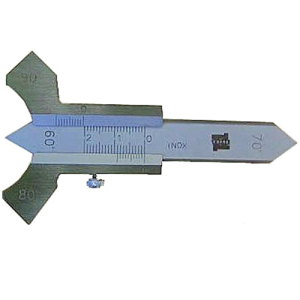 Для обеспечения возможности измерения тавровых соединений, концы движущейся измерительной части выполнены заострёнными. Для фиксации результатов и их визуального считывания шаблон оборудован упорным винтом, значительно повышающим удобство работы.