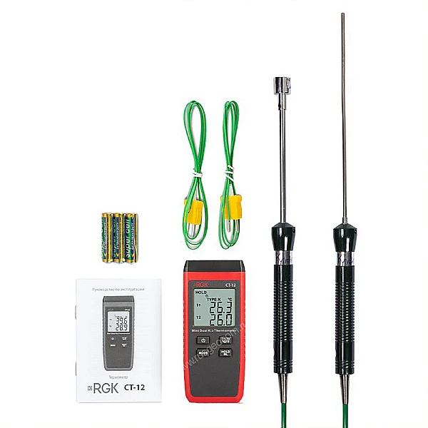 Термометр RGK CT-12 с погружным зондом температуры TR-10W и поверхностным зондом TR-10S