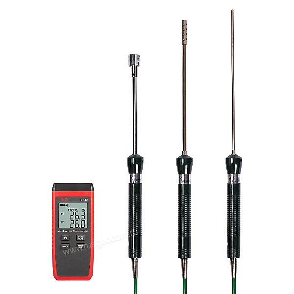 Контактный термометр RGK CT-12 с зондом температуры воздуха TR-10A, поверхностным зондом TR-10S и погружным зондом температуры TR-10W - это надежный и точный прибор для измерения температуры в диапазоне от -40°С до +500°С с комплектной термопарой. Погрешность при этом составляет не более ± 1,5 °C. Главное преимущество этой модели - 2 гнезда для подключения выносных датчиков с функцией определения разности между каналами. Благодаря такой конфигурации можно быстро и удобно решать множество измерительных задач, связанных с диагностикой и настройкой электроники, промышленного оборудования, систем отопления и вентиляции т.п.