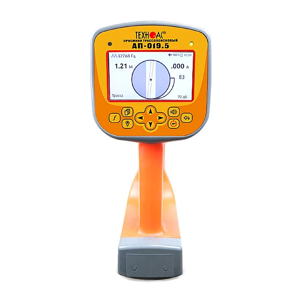 В составе комплекта приемник в виде моноблока с большим ЖК дисплеем, на который выводится изображение трассы и в автоматическом режиме происходит расчет глубины залегания коммуникации до 10 м, а также величины тока в линии. Встроенный GPS\ГЛОНАСС модуль для определения и записи координат нахождения коммуникации.